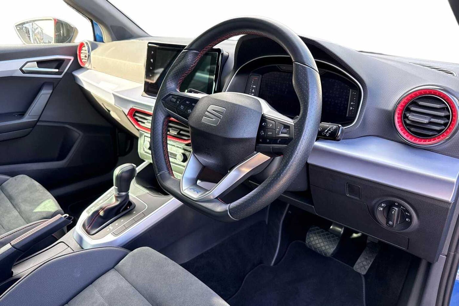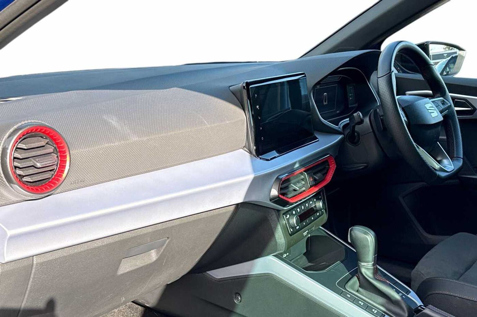 - Perforated Leather Flat-Bottomed Steering Wheel with Red Stitching and FR Logo with Leather Gear Knob and Handbrake